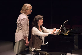 Acting pin-spots : A particularly nuanced performance by Caitriona Murphy as the arthritic piano teacher Elaine. She pines for the performer life she left behind when the stiffening in her joints set in at a young age. She observes, repeatedly, that Canadian jazz great Oscar Peterson gnarled with arthritis his whole career. Still, she fights back in her own way, describing both musical and human dramatics  : "We live in patterns, consciously or unconsciously. And we are always creating new patterns," she says, "new stories, new rituals that give us new shape and form : how would we ever hold ourselves together if we didn't?"